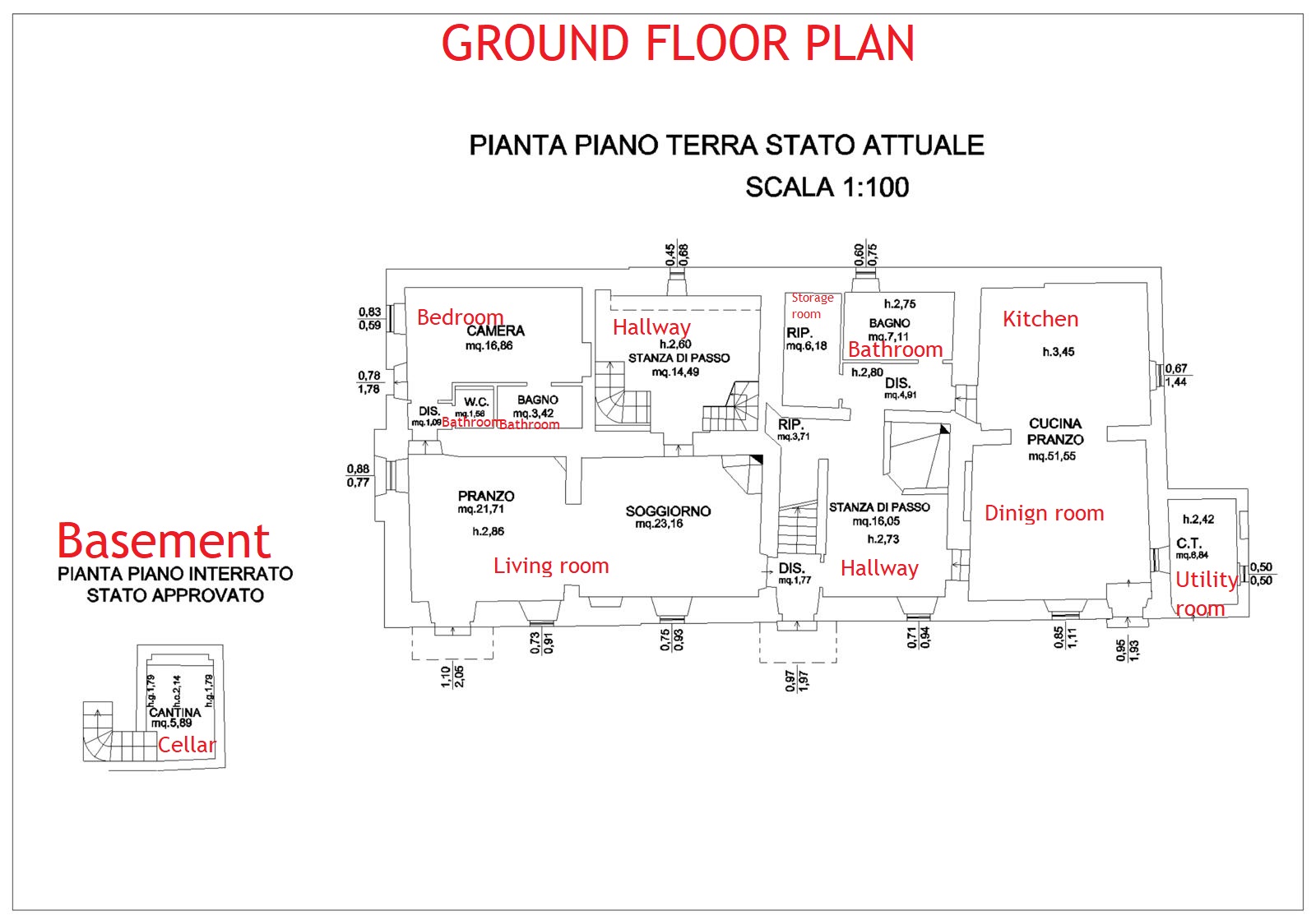 The ground floor comprises a dining room with a fireplace, an hallway with an oven, a kitchen/dining room, a bathroom, a study/bedroom with a bathroom, toilet, a small living room/hallway, a utility room/boiler room, and a bathroom with a bathtub.